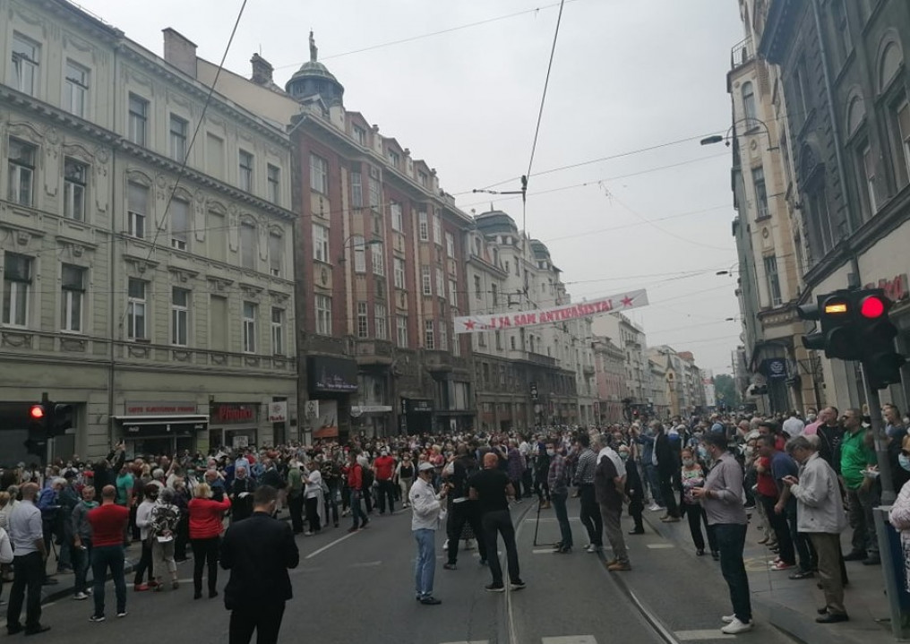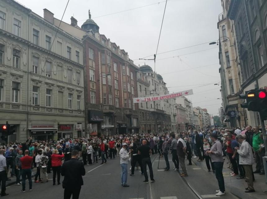 Članovi Saveza antifašista i boraca Narodnooslobodilačkog rata u Bosni i Hercegovini (SABNOR), ali i drugi građani antifašisti, njih nekoliko hiljada, u svom mimohod i u tišin stigli su ispred Vječne vatre, gdje je blokiran saobraćaj .