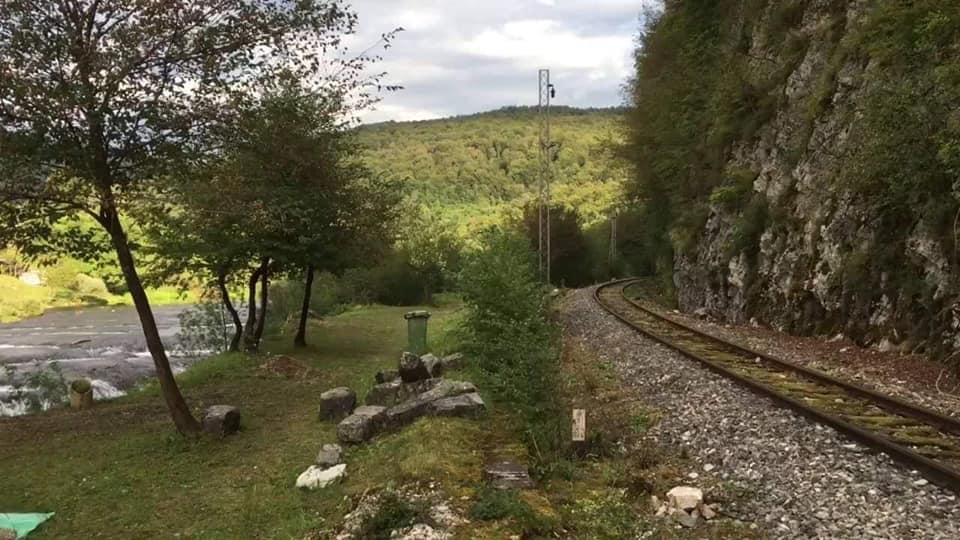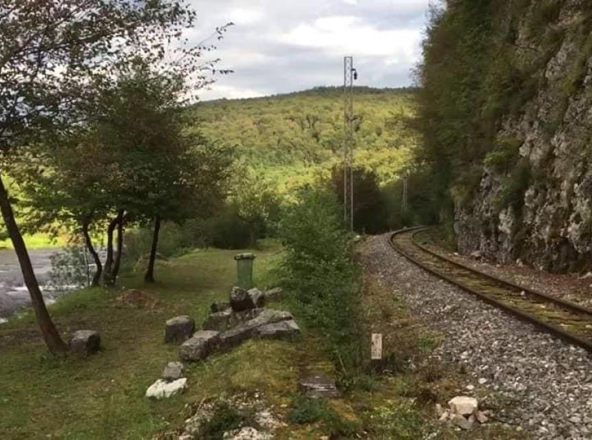 Stećci gurnuti pored uskotračne pruge prema Uni na najljepšem dijelu Nacionalnog Parka UNA/ Bihać.