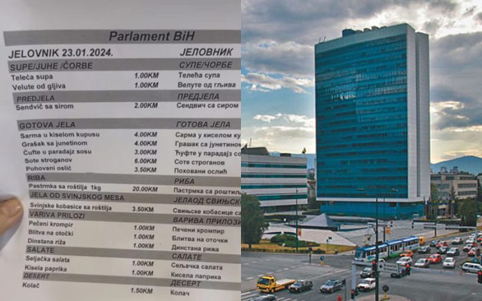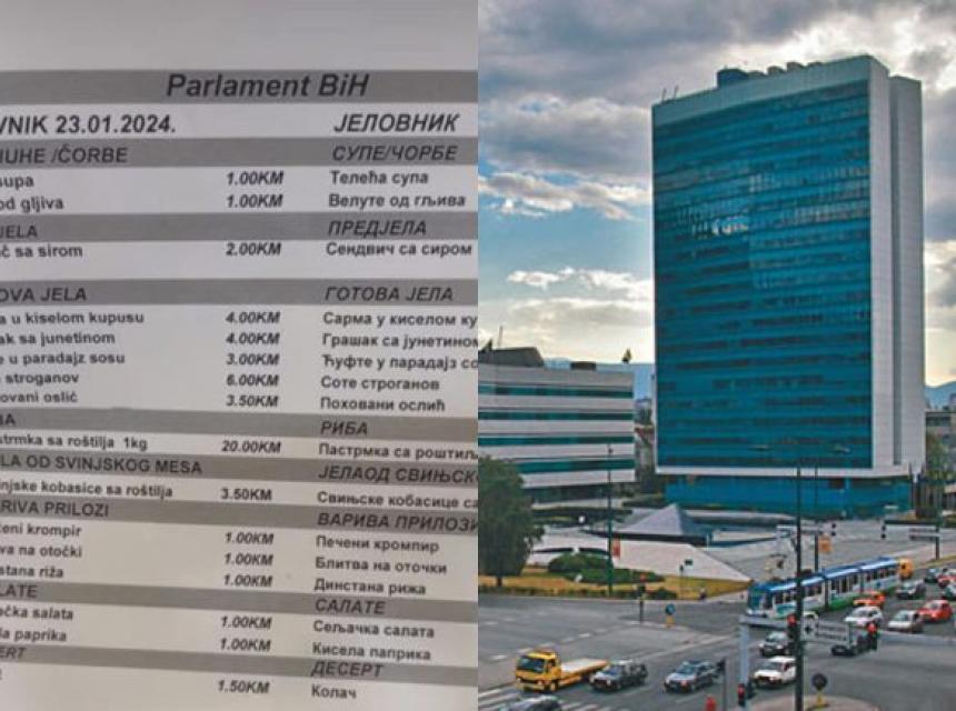 Sarmu u kiselom kupusu će platiti 4 KM, grašak sa junetinom 4 KM, ćufte u paradajz sosu 3 KM, sote Stroganoff “čak” 6 KM, a pohovani oslić i svinjske kobasice sa roštilja će platiti 3,50 KM.