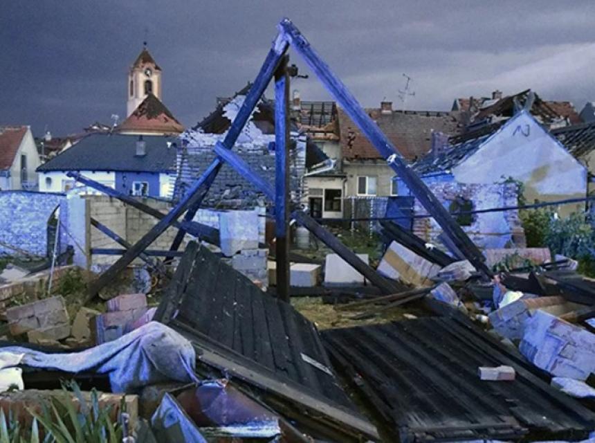 Češku pokrajinu Moravsku noćas je pogodila oluja praćena tučom veličine teniskih loptica i iznimno rijetkim, ali snažnim tornadom, koji je zahvatio nekoliko gradova na jugoistoku Češke te je rušio kuće do temelja. Olujni vjetrovi izazvali su apokaliptične scene, kuće su pretvorene u ruševine, krovovi odvojeni od zgrada, drveće iščupano, prevrnuti automobili.