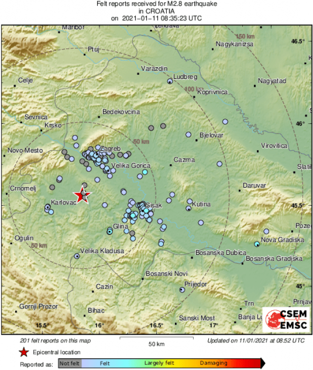 "Osjetio se pucketanje prozora", napisao je jedan od građana na stranici EMSC-a.