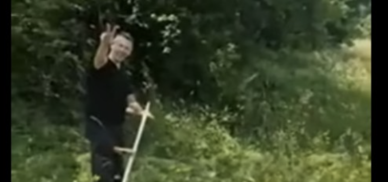Na videu se vidi kako zajedno s prijateljima kosi travu na livadi, uz prepoznatljivi gest dizanja tri prsta.
