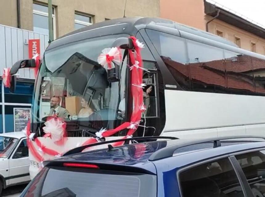Grad u centralnoj Bosni oduševila je ideja mladenaca koji su se za ovu priliku odlučili provozati autobusom glavnim visočkim ulicama.