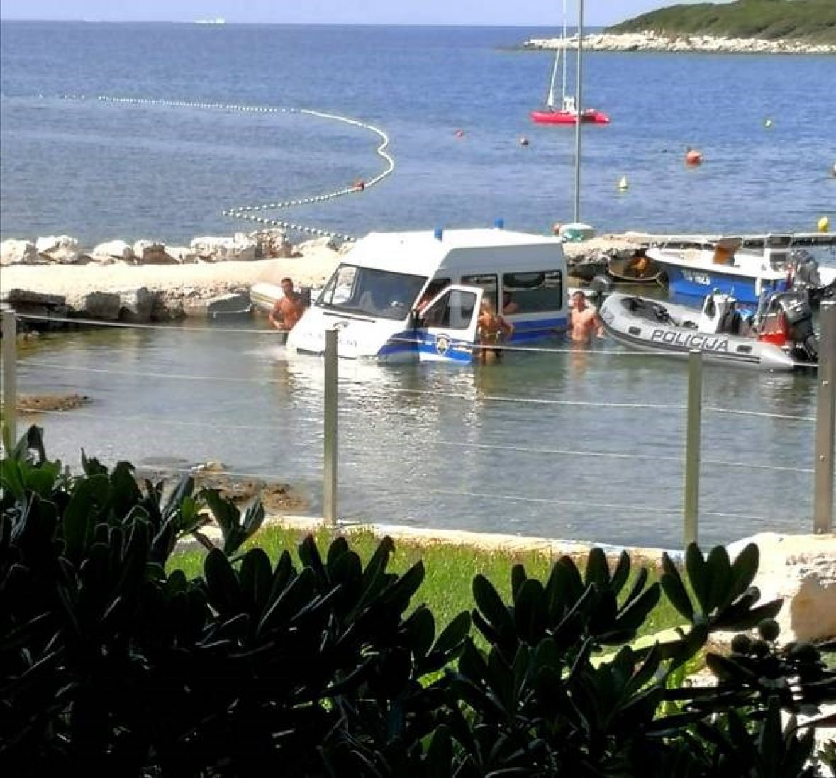 Naime, na rampi za izvlačenje gumenjaka u moru je završio - policijski kombi!