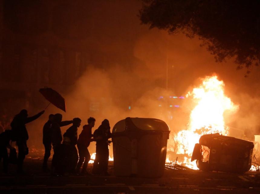 Nemiri u Barceloni su sve veći. Vatra je zapaljena na ulicama, sukobi demonstranata i policije su sve žešći. Zamaskirani, ogrnuti katalonskim zastavama i naoružani palicama, kamenjem i flašama, demonstranti jurišaju na policiju.