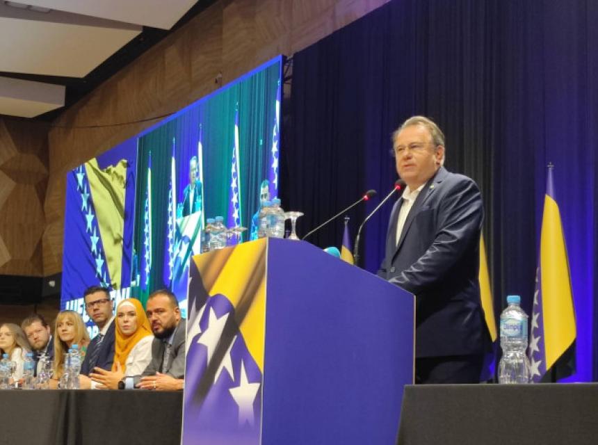 - Drugarice i drugovi, dame i gospodo, dragi prijatelji, dobrodošli na konvenciju pobjedničkog kandidata za člana Predsjedništvo BiH, budućeg člana Predsjedništva BiH, čovjeka koji mora drugi put pobijediti da bi dobio mandat u Predsjedništvu doktora Denisa Bećirovića. Okupili smo se oko zajedničkog kandidata, odlučni da mijenjamo sistem, da mijenjamo stanje, odlučni da za BiH svane novi dan.