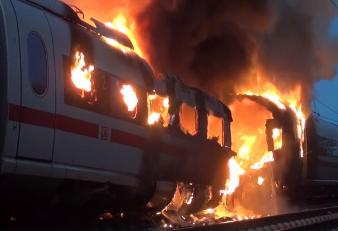 Iz voza je evakuirano svih 510 putnika, a vatra je zahvatila najmanje dva vagona, prenose njemački mediji.