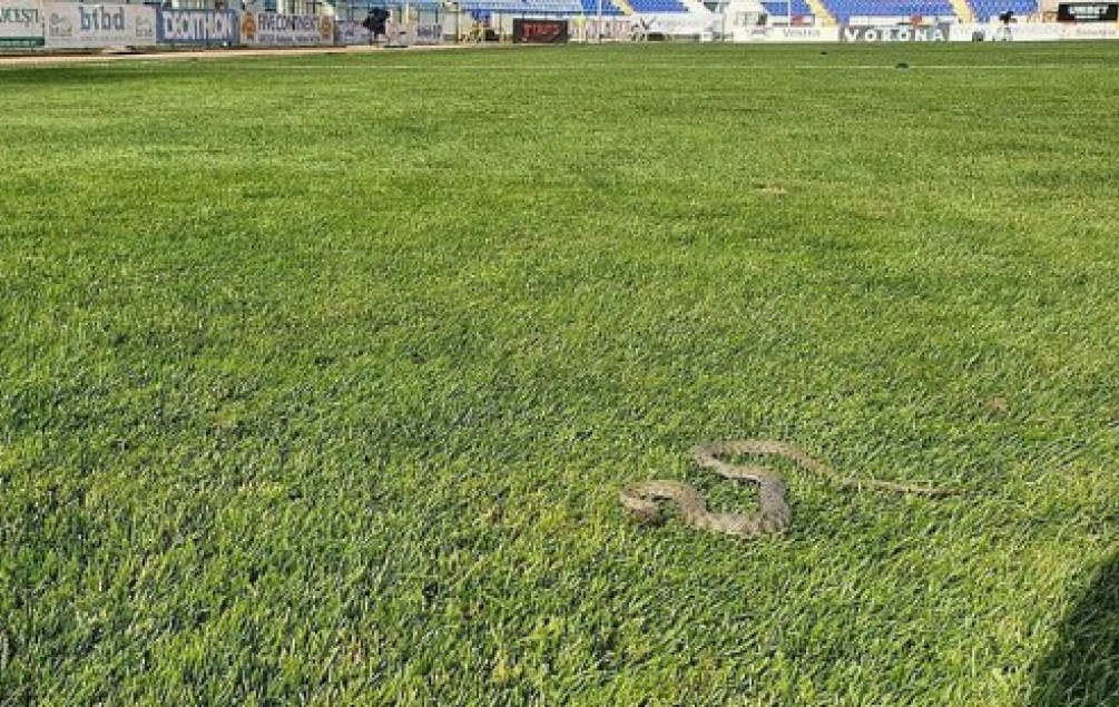 On je objavio da je uoči nedeljne utakmice Prve lige Rumunije između Botošanija i Klinčenija (0:0), na terenu stadiona viđena prava zmija.