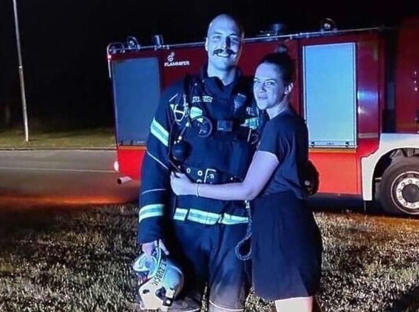 Naime, vatrogasac Tomislav Zubčić iz Osijeka uz pomoć kolega odlučio je iznenaditi svoju djevojku te je zaprositi služeći se vatrogasnim kolima.