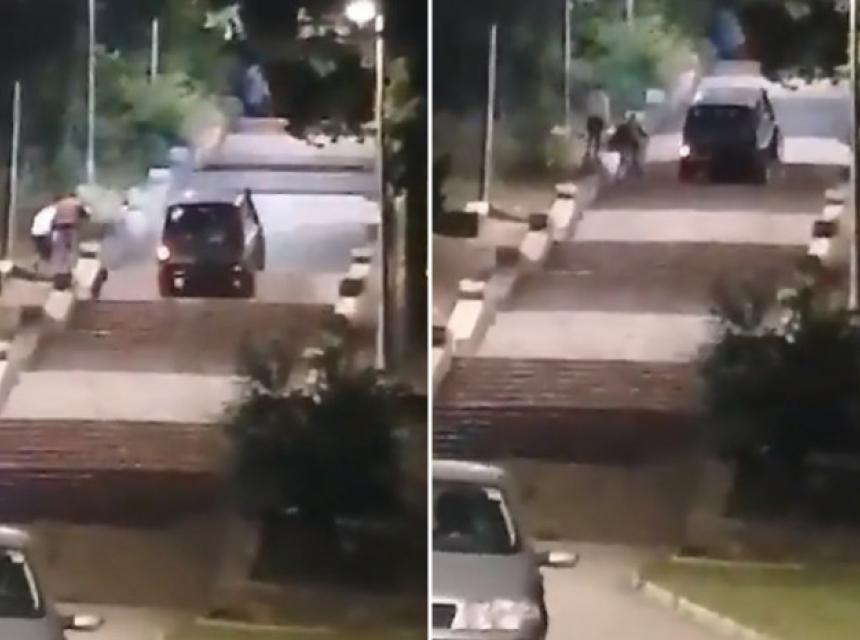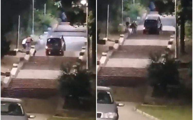 Vozač je nastavio voziti uz stepenice, a cijelo vrijeme za terencem su trčala dvojica mladića koji su ovu situaciju željeli pratiti iz blizine.