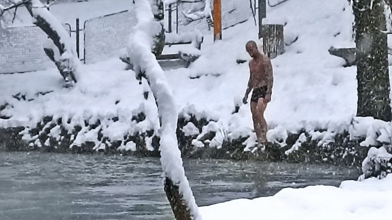 Iako čitav dan pada snijeg te je temperatura ispod nule, jedan muškarac odlučio se na, mnogi bi rekli, hrabar potez