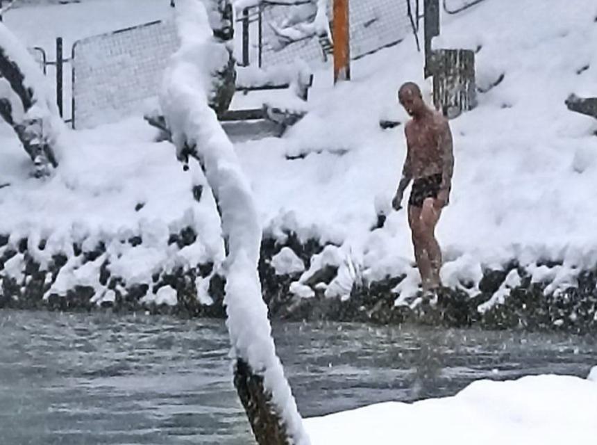 Iako čitav dan pada snijeg te je temperatura ispod nule, jedan muškarac odlučio se na, mnogi bi rekli, hrabar potez.