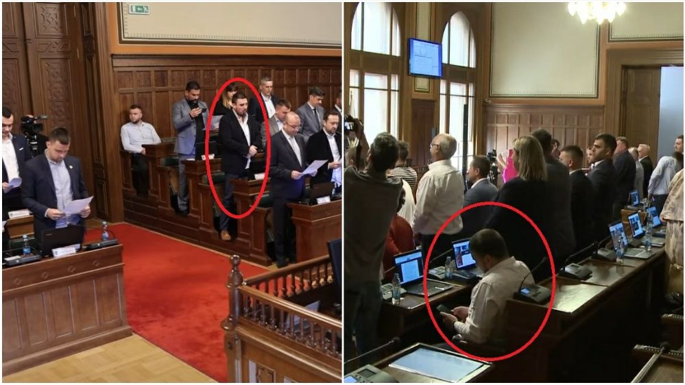 Osim toga, kada su zamoljeni da ustanu, kako bi novi gradonačelnik Samir Avdić i njegovi zamjenici Mirela Džehverović i Predrag Puharić pročitali zakletvu, on je jedini odlučio da sjedi i gleda u mobitel.