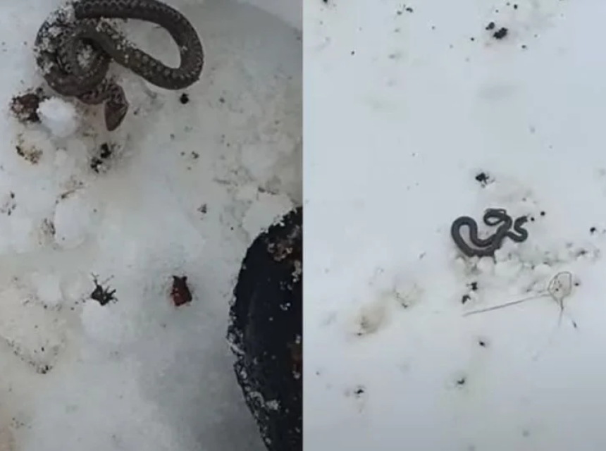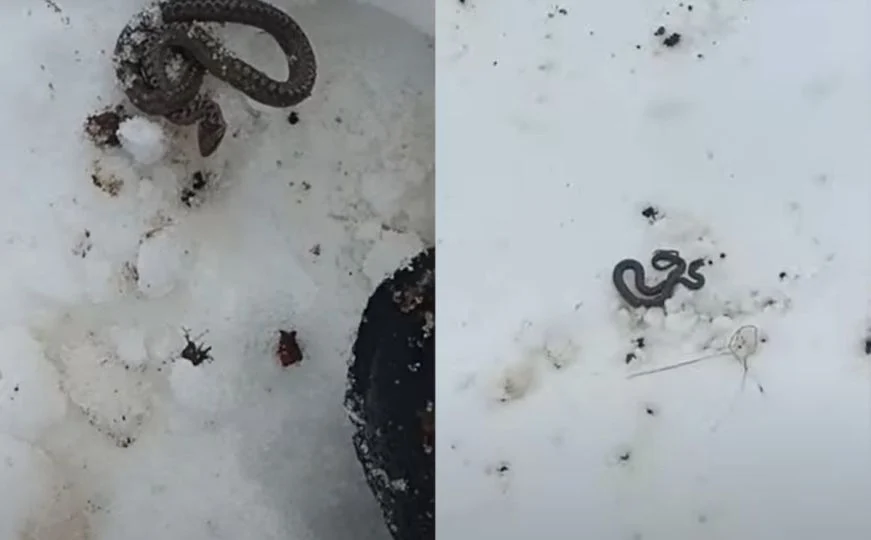 Kako su naveli radnici, u nevjerici su promatrali zmiju koja se našla na potpuno neočekivanom mjestu – na snježnom pokrivaču u februaru, što je iznenadilo sve prisutne.