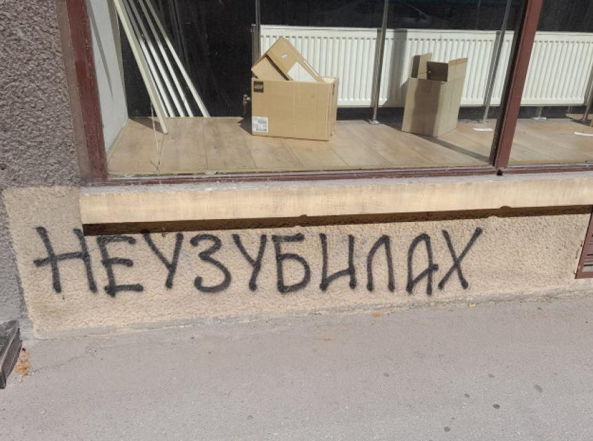 U glavnom gradu BiH prije nekoliko dana osvanuo je grafit "Neuzubilah" napisan na ćirilici. Grafit je ispisan na fasadi zgrade na Marin dvoru.