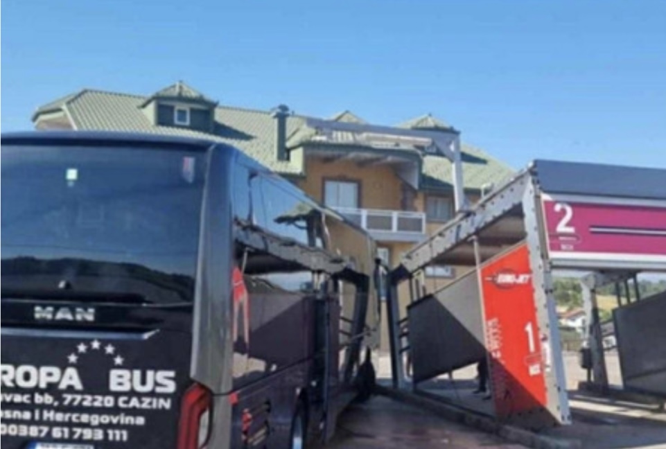 U Cazinu je danas došlo do neuobičajene saobraćajne nesreće kada je putnički autobus udario u konstrukciju autopraonice. Nesvakidašnji prizor iznenadio je prolaznike, a na svu sreću u incidentu nije bilo povrijeđenih osoba.