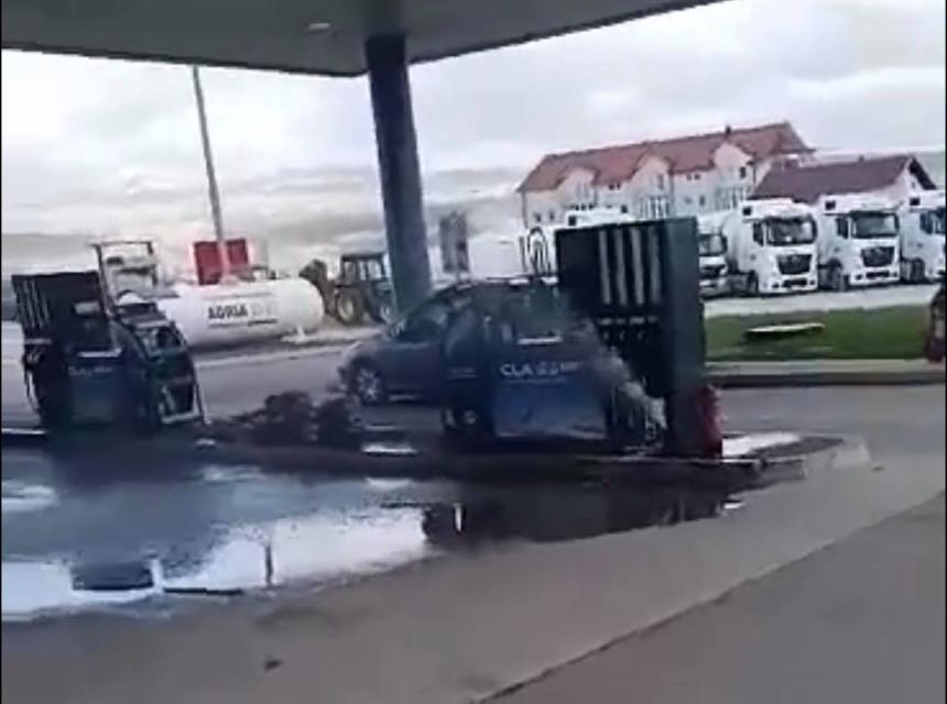 Naš pratitelj nam je poslao zanimljiv video koji je snimio u Tomislav Gradu. Gorivo je iz jednog spremnika za punjenje na benzinskoj pumpi pljuštalo na sve strane.