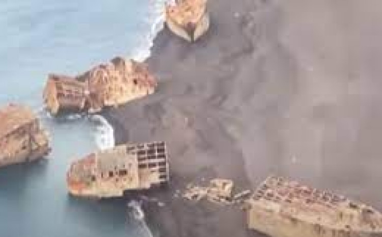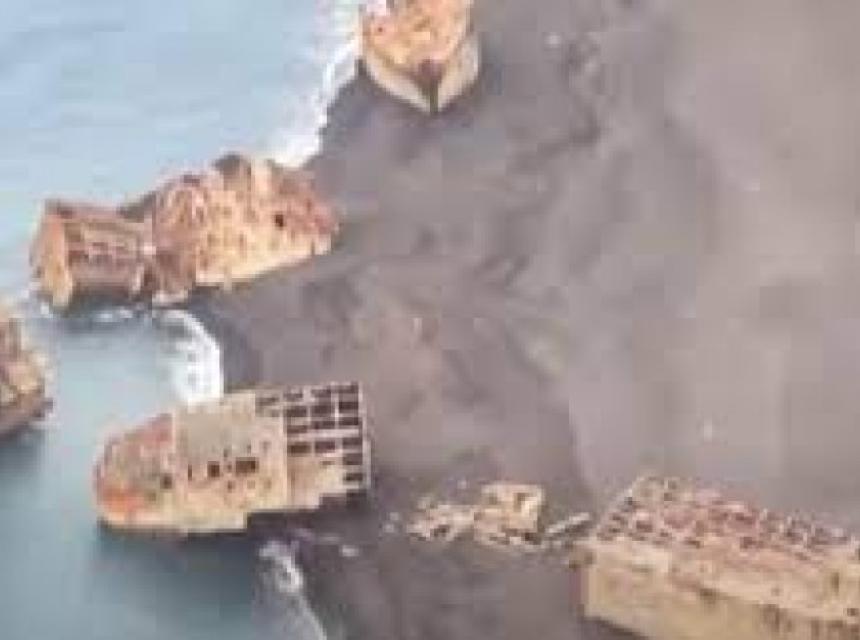 Uzrok iznenadne pojave brodskih olupina je pomjeranje morskog tla uslijed aktivnosti vulkana — planine Suribači.