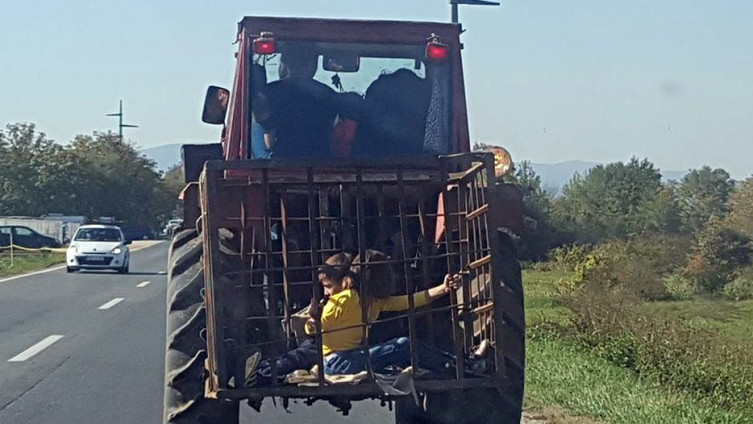 Jedan od takvih zabilježen je danas na magistralnom putu Tuzla – Gračanica, u okolini Puračića, kada je vozač traktora u korpu koja služi za prijevoz stoke, uglavnom svinja, strpao dvoje djece.