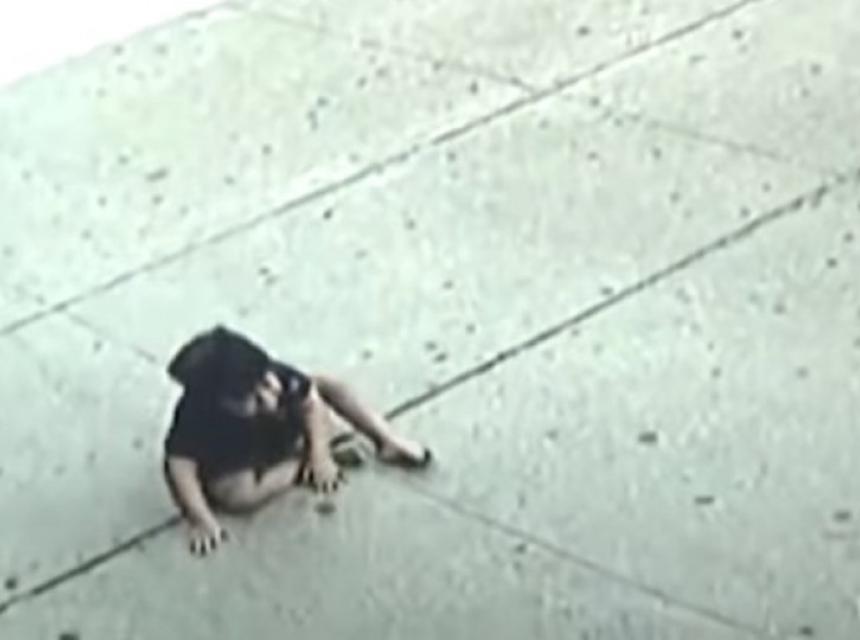 Video prvo prikazuje pomicanje tende na koju je pao trogodišnjak. Nakon što je sletio na tlo, na snimci se vidi da dječak pokušava ustati. Pronašla ga je žena koja je prolazila ulicom, a ubrzo se oko dječaka okupila skupina ljudi koja mu je pokušavala pomoći.