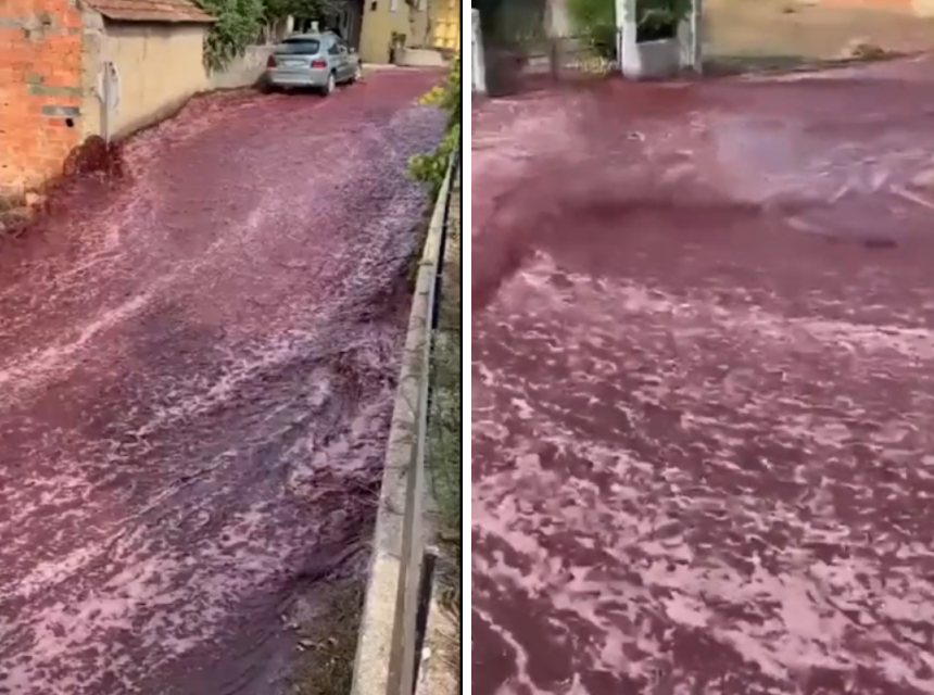 Vinari su mali portugalski grad Sao Lorenko do Bairo ofarbali u crveno nakon što su dva njegova kamiona slučajno prosula 2,2 miliona litara crnog vina niz mirnu ulicu.