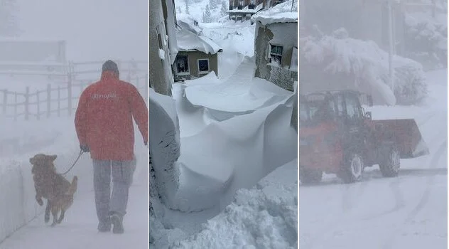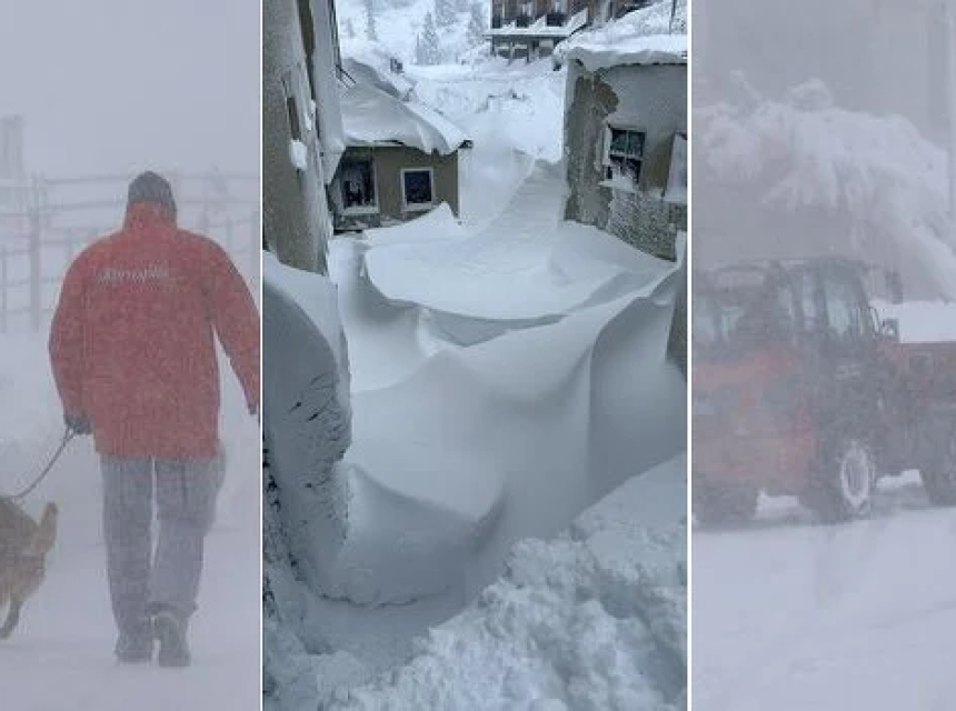 Na društvenim mrežama pojavili su se nevjerovatni snimci s istočnih Alpa, konkretno iz Obertaurna, gdje je snijeg gotovo potpuno zatrpao kuće i doseže do struka. Automobili su u potpunosti prekriveni snijegom.