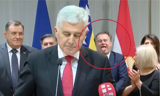 Tokom govora Dragana Čovića, Nikšić je pravio nenormalne grimase. Pogledajte kako plazi jezik i nekontrolisano se smije.