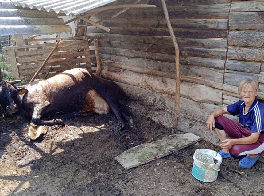 - Išla sam doktoru, kada sam se vratila, još izdaleka sam vidjela da nije dobro, trbuh joj je bio nadut, sva se ukrutila, a tele kraj nje leži. Platila sam je 3.000 maraka, a sada nemam kapi mlijeka i ne znam kako tele od 25 dana da othranim. Godinama me prate nekakvi belaji pa ne znam više šta da radim - kaže Rahima Hurić.