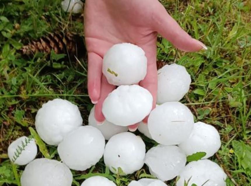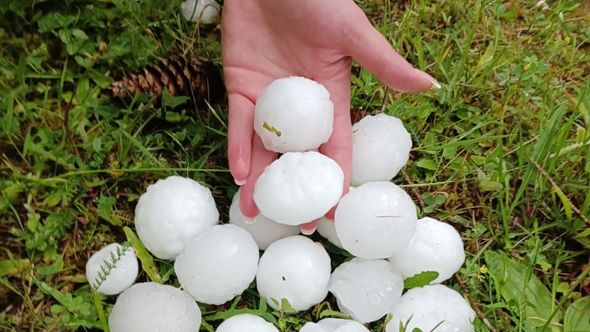 U ovoj maloj općini, kako se može vidjeti na fotografijama na Facebook stranici Dolina Lašve, padao je grad veličine jajeta.