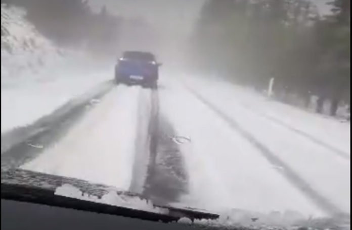 Tuča veličine oraha u samo nekoliko minuta stvorila je sloj leda i snijega na cesti u visini od sedam centimetara. Istovremeno, temperatura zraka se od 20 Celzijevih stepena u nekoliko minuta spustila na samo 5.