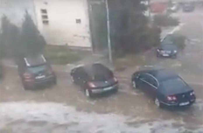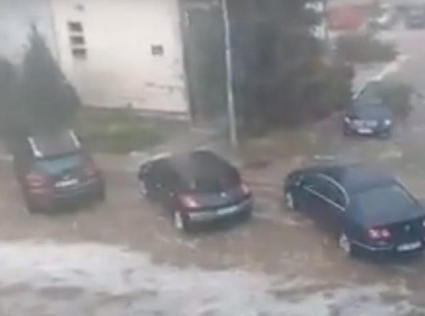 Jako nevrijeme pogodilo je danas Nikšić, a velika količina kiše u centru grada za sat vremena poplavila je ulice.