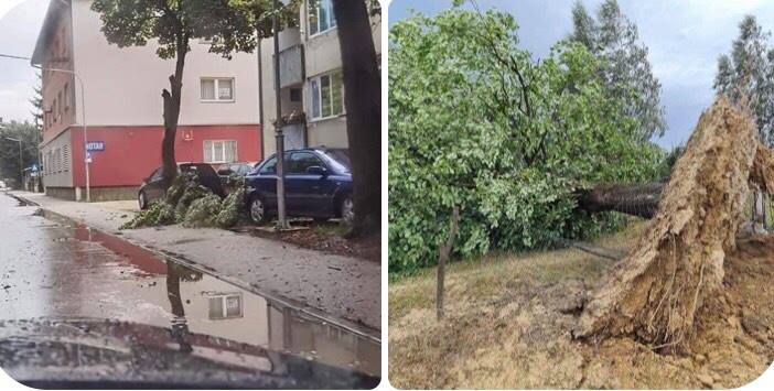 U Bosanskom Novom je takodjer bio silan i jak vjetar i oluja, koji su, kako možemo vidjeti i iz slika lomili i čupali drveće iz zemlje.
