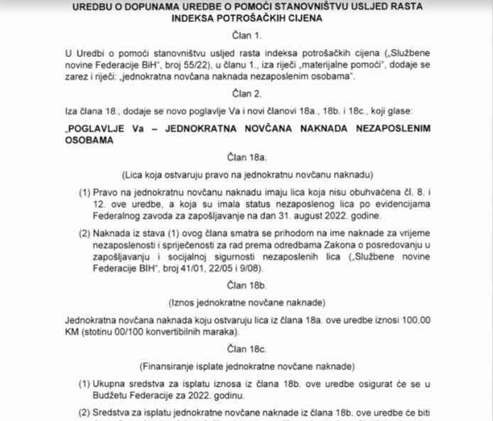 Sadašnjom dopunom Uredbe Vlada Federacije proširuje obuhvat programa pomoći i u isti uvrštava i nezaposlene osobe. Na ovaj način Vlada FBiH ostaje privržena principu prema kojem višak javnih prihoda direktno usmjerava građanima kojima su oni najpotrebniji.