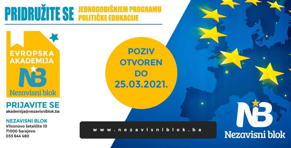 Nezavisni blok pokreće Evropsku akademiju- jednogodišnji program političke edukacije i obuke za mlade lidere iz svih sfera društva, a sa posebnim akcentom na programe ubrzanog pristupa Bosne i Hercegovine euroatlanskim integracijama.