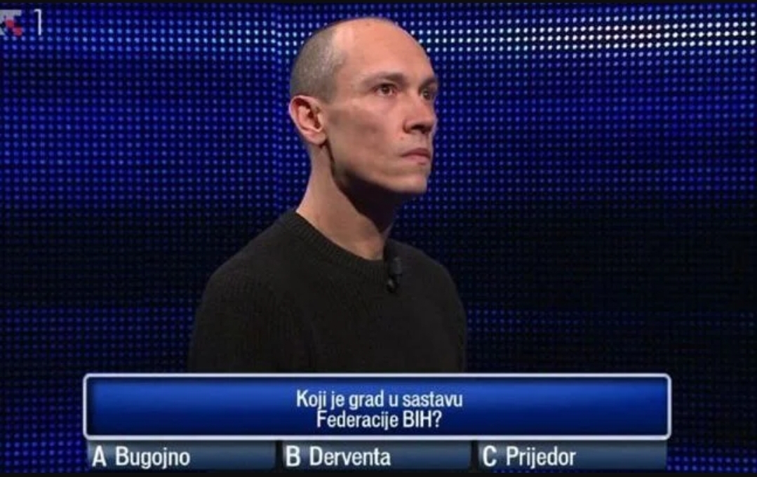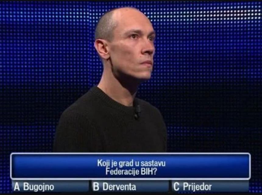 Ponuđeni odgovori bili su a) Bugojno, b) Derventa i c) Prijedor. Vinko je odabrao Prijedor, dok se Kotiga odlučio za Derventu.