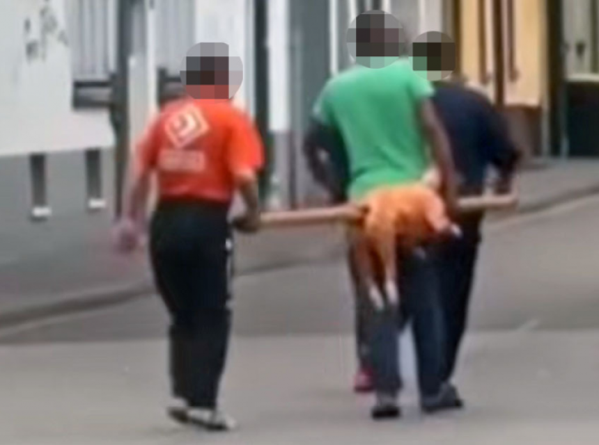 Policija u Neunkirchenu u njemačkoj Saveznoj zemlji Saarland ovog je vikenda dobila nekoliko poziva zbog četvorice muškaraca koji su ulicom nosili drveni ražanj i na njemu životinju.