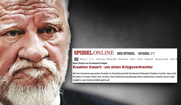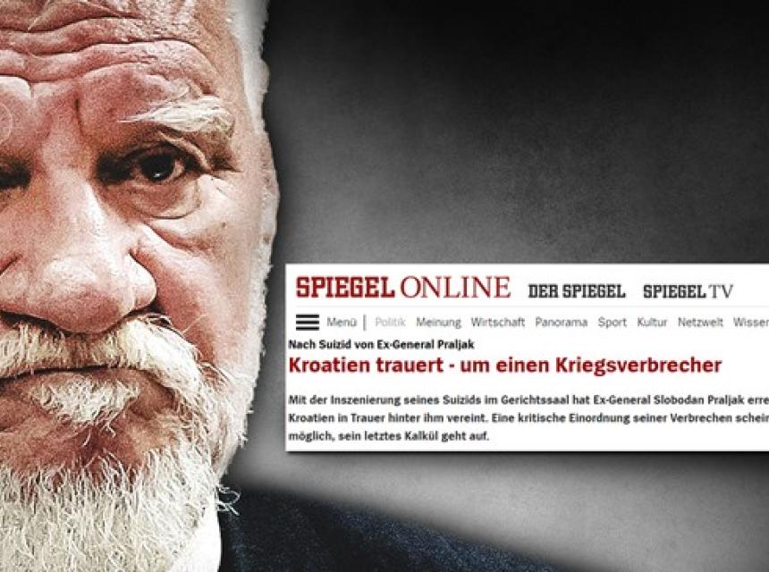 ''Inscenacijom svojeg suicida u sudnici bivši general Slobodan Praljak postigao je da se Hrvatska iza njega ujedini u tugovanju. Kritička procjena njegovih zločina postala je nemoguća, dakle njegova posljednja kalkulacija je uspjela'', piše Der Spiegel te dodaje da je Praljkovo samoubojstvo ''u Hrvatskoj izazvalo politički potres, koji se proširio na cijeli zapadni Balkan''.