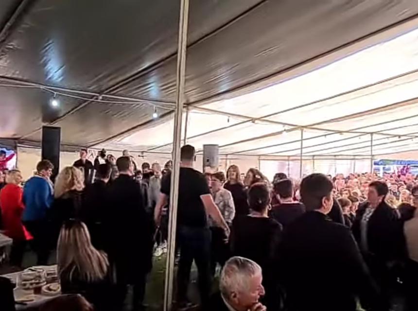 Bez obzira na sva epidemiološka upozorenja o mjerama zaštite od koronavirusa u Prozoru je danas organizovano slavlje sa stotinama pristutnih građana, a pod šatorom se zaigralo i kolo.