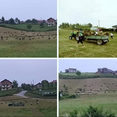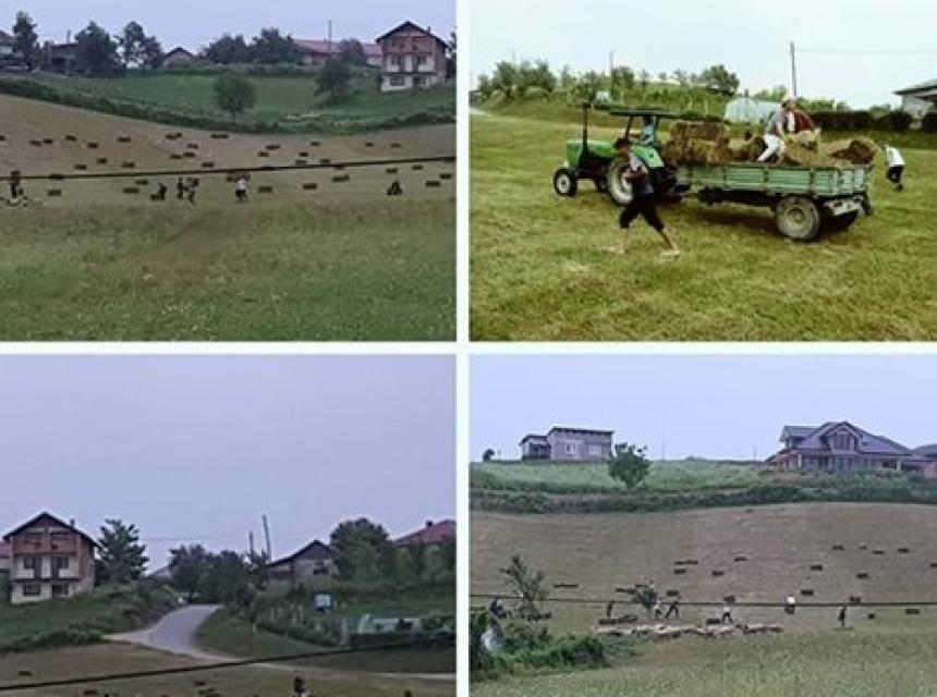 - U Velikoj Kladuši migranti pomažu mještaninu da pokupi sjeno – stoji u opisu objavljene fotografije.