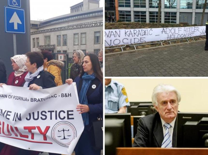 Uoči izricanja pravosnažne presude Radovanu Karadžiću ispred suda u Hagu dogodio se incident kada je policija zatražila da se sa ograde ukloni transparent poređenja Radovana Karadžića i Adolfa Hitlera, javlja saradnik portala Klix Mehmed Smajić.