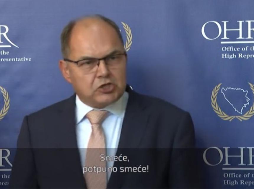 Ali u srijedu je i on, tokom posjete gradiću Goraždu, eksplodirao: "Rubbish, full rubbish! I am rid of this!", viknuo je Šmit u novinarski mikrofon govoreći: „Koještarija, potpuna koještarija" Toga mi je na vrh glave! Dosta mi je optužbi. I: "Prijatelji, tako se ne ide u Evropu!", prenosi Deutsche Welle.