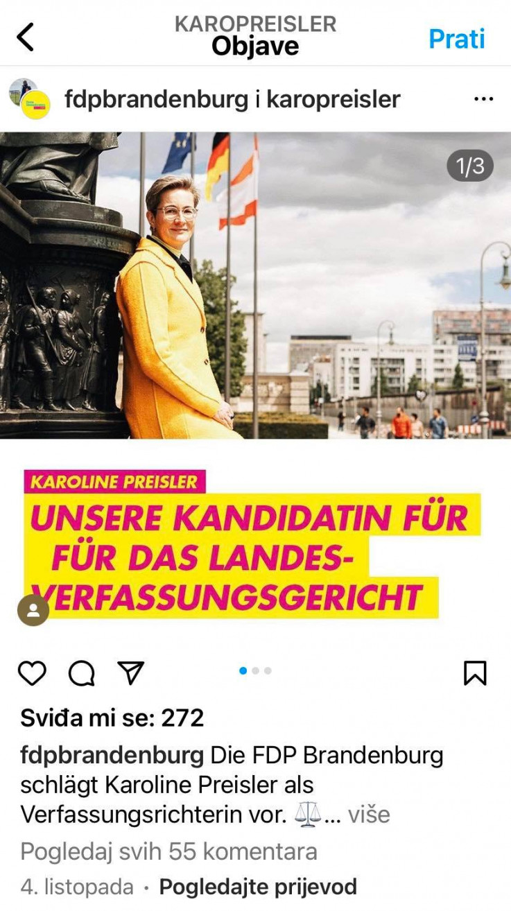 Preisler je trenutno u procesu selidbe za Berlin i nada se da će postati sutkinja u pokrajini Brandenburg.