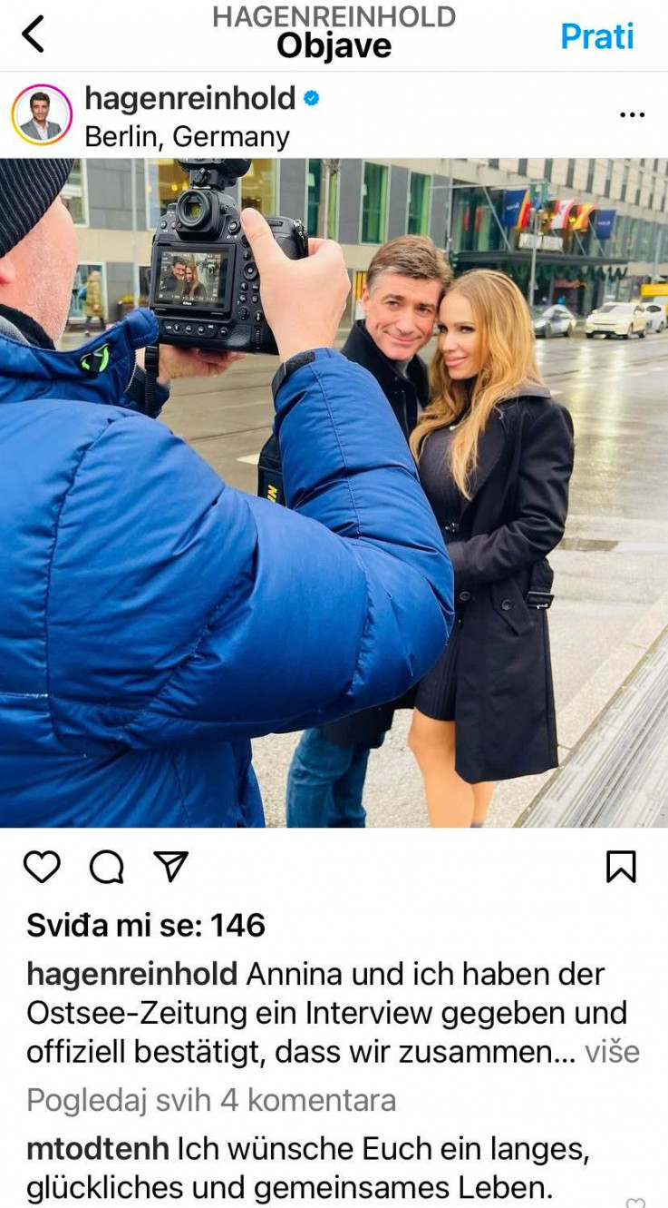 Sa njom se složio Rajnhold koji više ne skriva svoju novu djevojku od javnosti, te je s njom počeo dijeliti i objave na Instagramu.