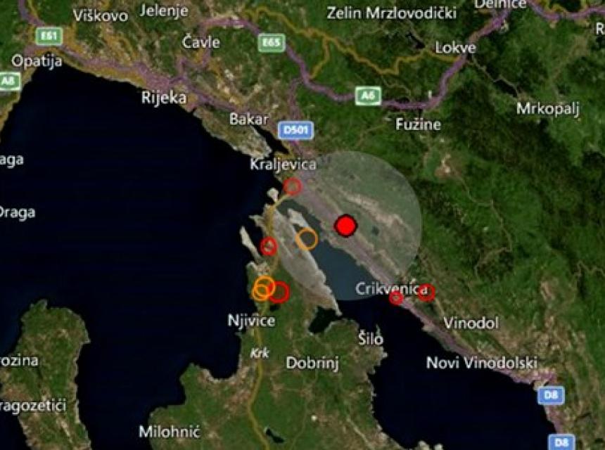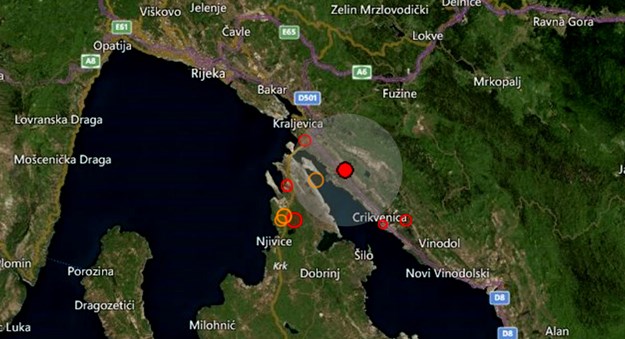 EMSC je zabilježio potres u 1 sat i 20 minuta, 18 kilometara od Rijeke, procjena jačine 2.3 po Richteru, nema podataka o dubini epicentra.