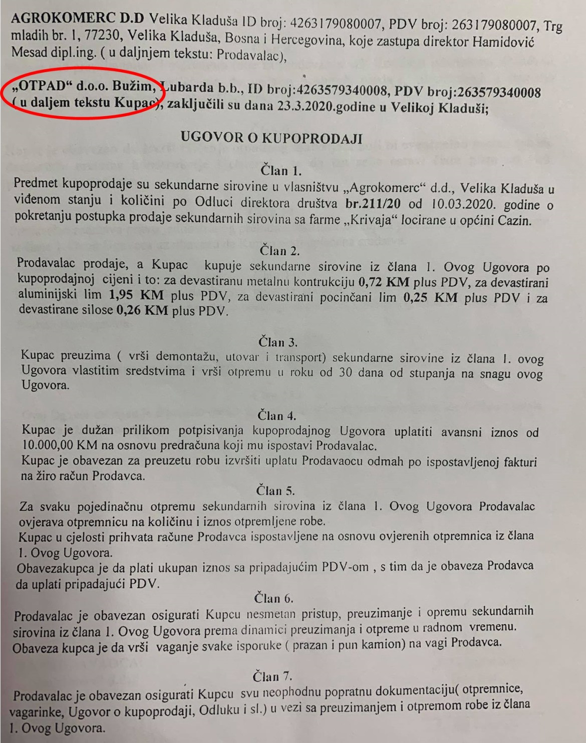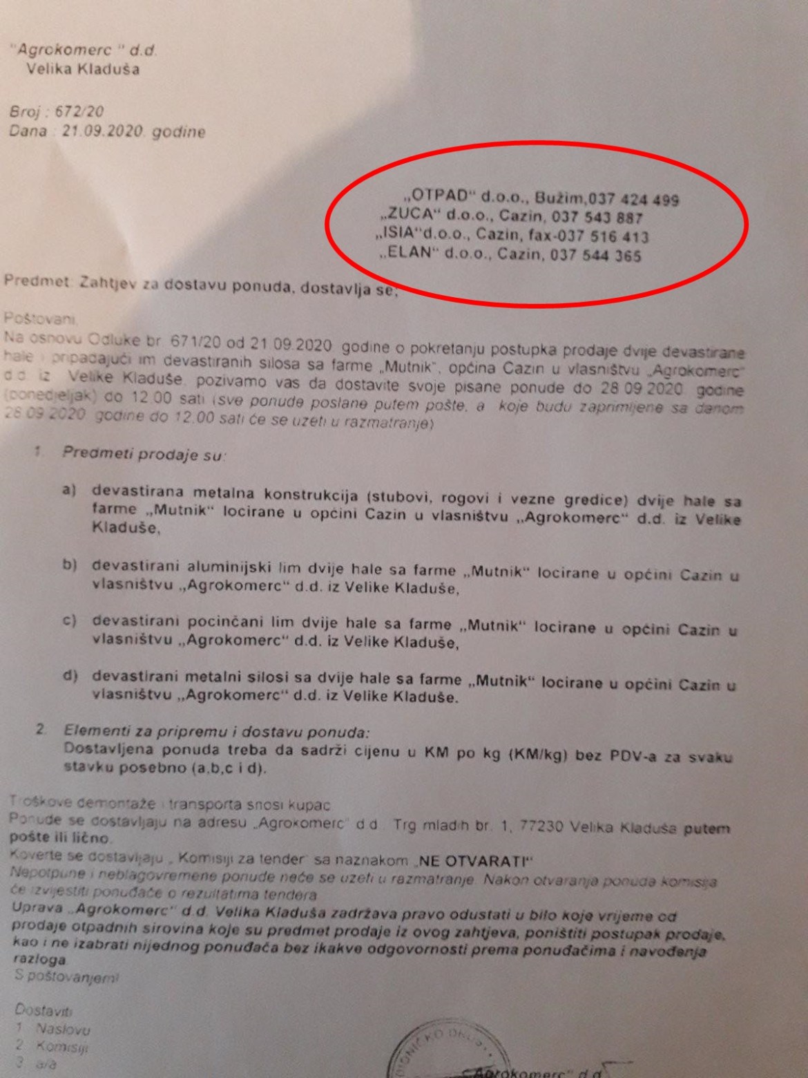 Naime, radi se o velikoj rasprodaji preradskih farmi koje direktor Mersad Hamidović prodaje određenim firmama kao da se radi o privatnoj, a ne državnoj imovini. Po riječima našeg svjedoka, direktor Hamidović favorizira određene firme tako što samo njima šalje poziv kada Agrokomerc prodaje preradske farme i to u sekundarne sirovine. Samim tim što se farme prodaju u sekundarne sirovine i postižu se cijene od 8000 KM do otprilike 12 000 KM za jednu farmu, naš svjedok smatra da su Agrokomerc i njegovi povjerioci oštećeni jer bi ove farme dostigle mnogo veću cjenu da se prodaju putem Javnog poziva koji bi bio objaven u dnevnom listu, televiziji i internet portalima kako na Unsko-sanskom kantonu, tako i u cijeloj Bosni i Hercegovini.