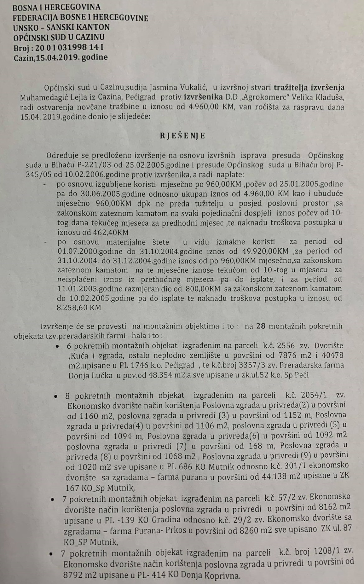 Samo za naše čitaoce, donosimo vam Rješenje o izvršenju na kojem se jasno vidi da se izvršenje vrši na čak 28 hala, a neke od tih hala su ovih dana prodane.