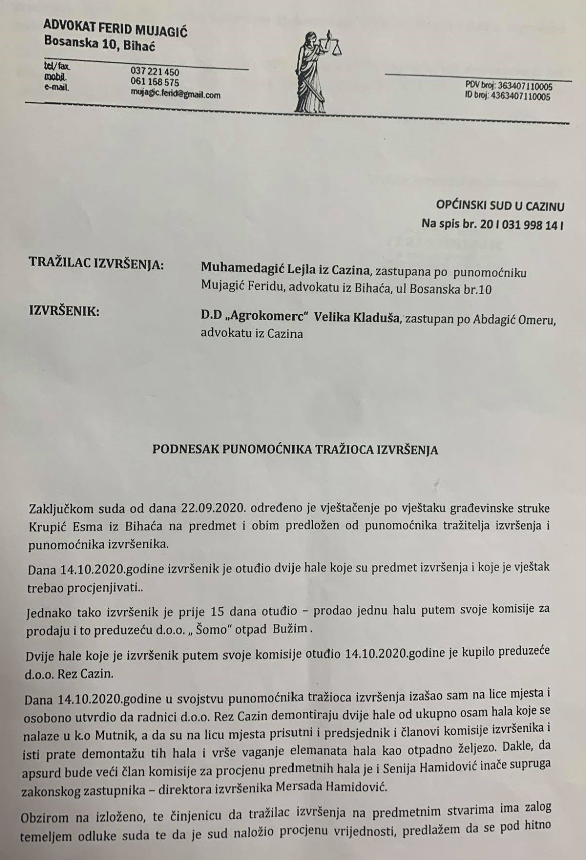 Ekskluzivno za naš portal, donosimo i Podnesak punomoćnika tražioca izvršenja tj. Lejle Muhamedagić koju zastupa advokat Ferid Mujagić, a u kojem sve jasno piše.