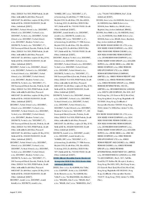 Još zanimljivije je što je Ured za kontrolu stranih sredstava (OFAC) koji funkcioniše pri Ministarstvu finansija SAD-a u petak (17. augusta 2018. godine) objavio takozvanu "crnu listu" na kojoj se ponovo nalazi ime Milorada Dodika.