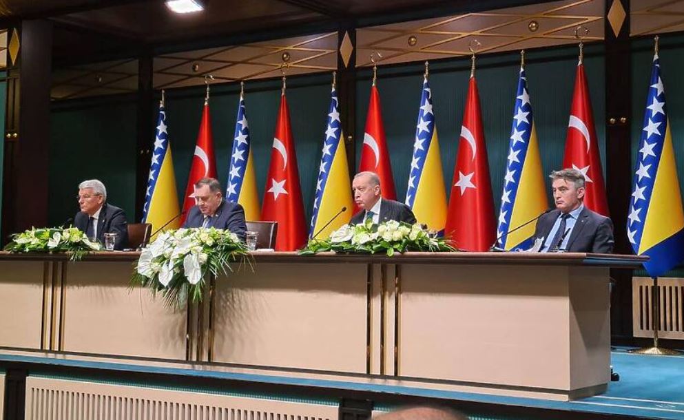 Članovi Predsjedništva BiH započeli su danas službenu posjetu Turskoj, a nakon niza obavljenih sastanaka, Komšić, Džaferović i Dodik sastali su se i sa predsjednikom Turske Recepom Tayyipom Erdoganom.