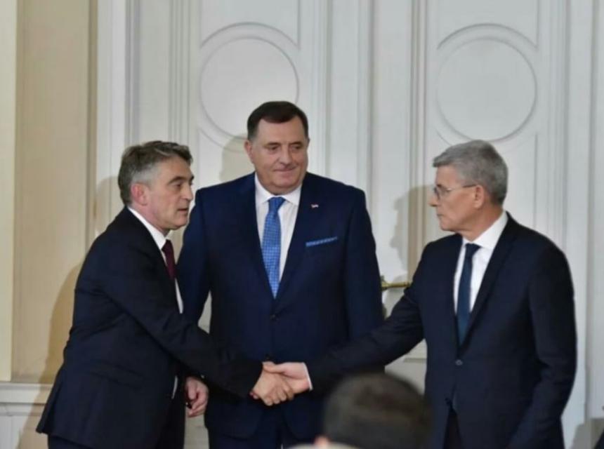 Iste stvari ponavlja i Milorad Dodik, predsjednik SNSD-a. Mora se riješiti pitanje Ustavnog suda i CIK-a. Naglašava i to da se ne može ništa rješavati bez "legitimnih" predstavnika hrvatskog naroda.